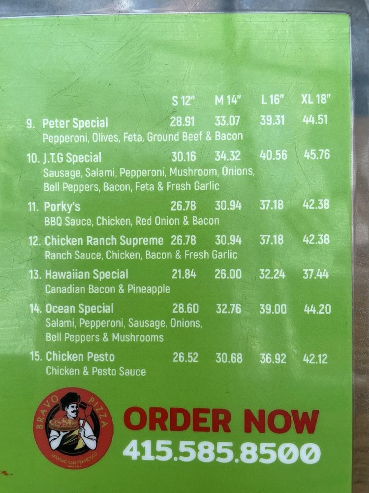 Welcome to Bravo Pizza, a beloved San Francisco gem located at 5145 Mission St. This Italian pizzeria is renowned for its delicious, authentic pizzas and a vibrant atmosphere that appeals to all ages. Bravo Pizza excels in creating a memorable dining experience with a menu that features thick homemade crusts and the freshest ingredients, ensuring each slice bursts with flavor.